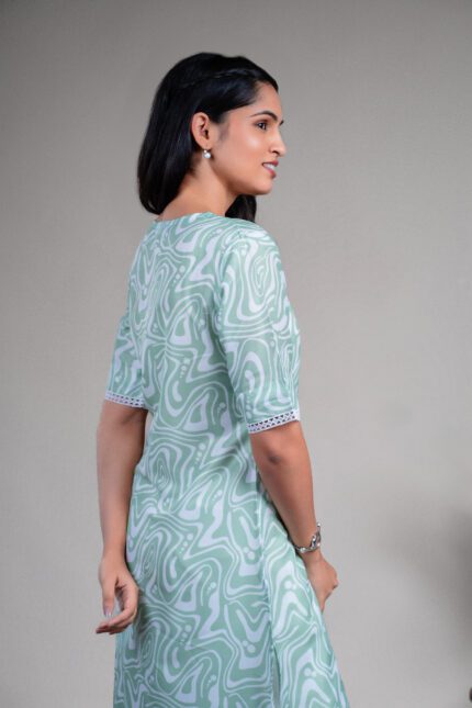 AMIS Blue-Cream Cotton Kurta – 3/4 Sleeve