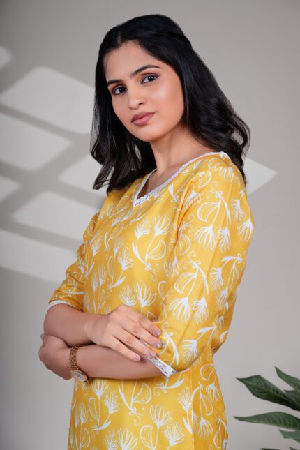 Be the first to review “AMIS Women’s Straight Kurta in Lavender Kandha Cotton – White Floral Elegance”